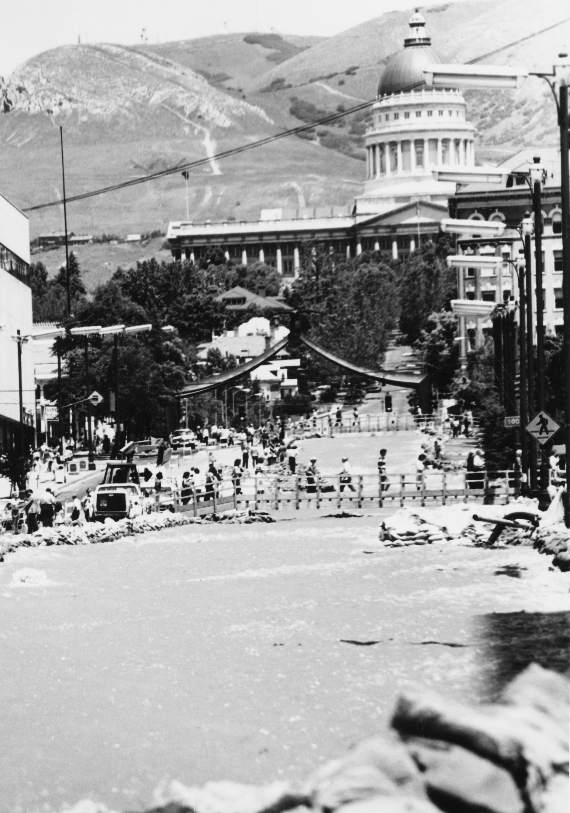 Ben Ling, Thomas R. Dowell, and Roderick Pressley, “Sandbaggers Turn State Street Into Aqueduct,” The Salt Lake Tribune, May 30, 1983, A1.